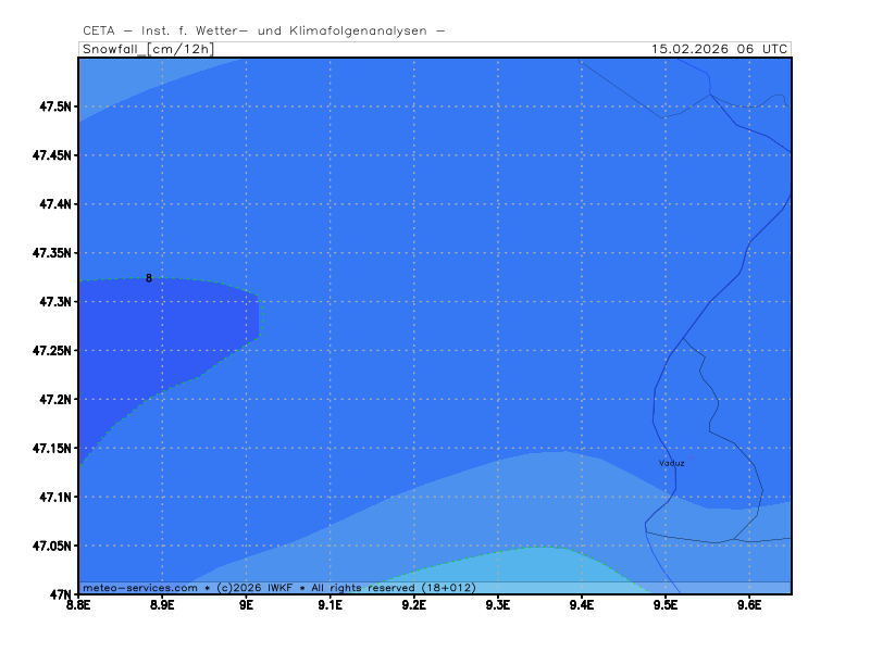 Schneefall in 12 Stunden in cm